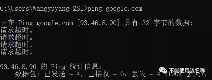 简而言之,DNS 域名污染就好比你想在电话号码簿上查询朋友的电话号码,但是不曾想,电话号码簿被人掉包了,你拿到的是假的电话号码簿,原本正确的手机号码被替换成了错误的号码,导致你无法打通电话。而该系统触发的规则使用了类似正则表达式的结构,例如规定“对于一切 *.google.com 的域名解析到某个不存在的ip地址”直接使用 windows 的 ping 命令就可以亲眼看到 DNS 污染的运作效果。谷歌官网的服务器明明架设在美国科罗拉多丹佛,但从下图可以看见,在国内从 DNS 服务器请求到的 ip 地址却是 93.46.8.90 这个来自意大利的无效 IP 地址